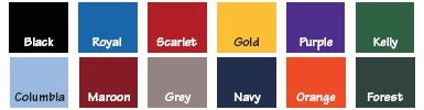 Colors: black, royal, forest green, scarlet red, gray